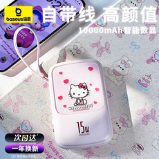倍思HelloKitty三丽鸥Q电充电宝10000毫安自带线快充迷你超薄小巧便携带快充移动电源适用苹果15/16华为