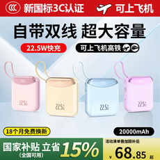 3C认证迷你充电宝超大容量20000毫安超薄小巧便携自带线超级快充正品旗舰适用华为苹果专用移动电源可上飞机