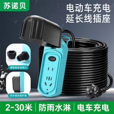 电动摩托充电延长线电瓶车户外防水插座插排拖线板5/10/20/3040米