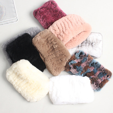 兔毛围脖女冬季皮草帽子围巾保暖毛绒编织空顶弹力发带脖套真毛
