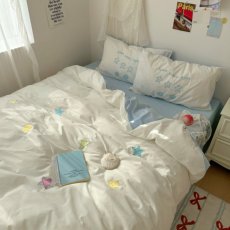 蓝色星星全棉四件套纯棉床单被套床上用品春夏床品1.8m水洗棉刺绣