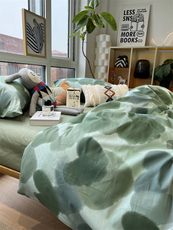 ins绿色爱心写意床上四件套全棉纯棉文艺1.5m1.8米被套床单三件套