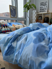 日落云海间|干净治愈系蓝色全棉四件套流苏剪花温柔荷叶花边1.8m
