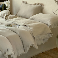 A类母婴复古简约皱皱纱流苏卡其四件套全棉纯棉1.5m1.8米被套床单