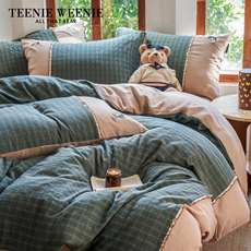 TeenieWeenie小熊森系全棉色织提花四件套纯棉被套床单1.8m床笠款