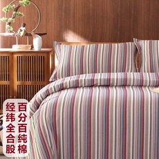 ins日式细条纹米色床上用品色织四件套全棉纯棉文艺1.5m1.8三件套