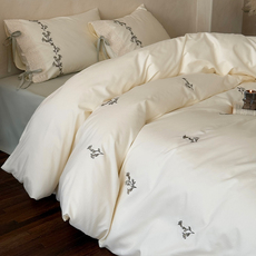 韩式水洗棉奶白色系带款枕套床上四件套全棉1.5m1.8米被套三件套
