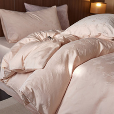 60支水洗棉简约提花红色床上四件套全棉1.5m1.8米公寓被套三件套