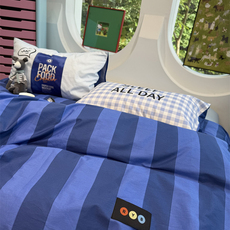 北欧简约蓝条纹黑灰色床上四件套全棉纯棉1.5m1.8被套床单三件套
