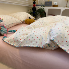 ins彩色小爱心彩色花边双层纱纯棉四件套1.5m1.8米少女床单被套三