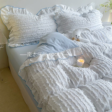 A类母婴级全棉皱皱纱四件套 北欧风ins纯棉被套1.5m1.8米床单款