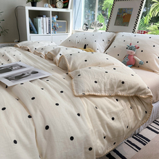 ins少女心灰色波点皱皱纱床上四件套全棉纯棉1.5m1.8米被套床单三