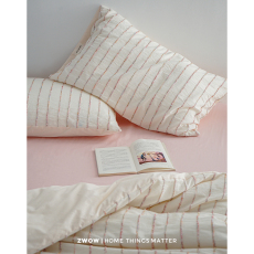 造卧zwow2025新品全棉立体段染提花条纹粉色系少女水洗床上四件套