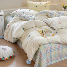 ins博主风四件套水洗棉被套床单人宿舍床上三件套非全棉纯棉床品4