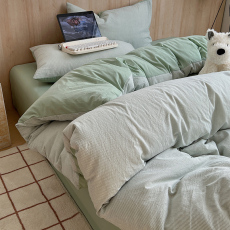奶油双拼の四季款小清新纯色全棉水洗棉四件套舒适纯棉少女心床品