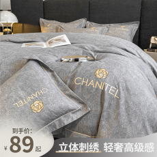 轻奢床上四件套水洗磨毛被套床单人宿舍三件套床笠非全棉纯棉床品