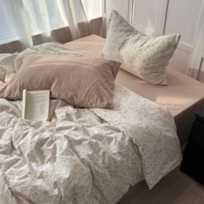 倍柔软|秋冬纯色纯棉四件套100全棉水洗棉床品素色轻奢侘寂日式
