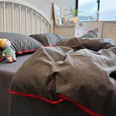 混搭日式纽扣款被套床上用品色织水洗四件套全棉纯棉简约1.5m1.8