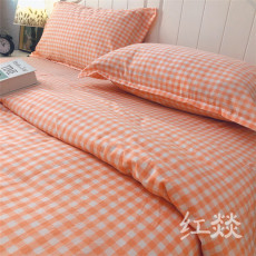 梨梦 ins韩系格子少女纯棉水洗棉四件套全棉床单被套宿舍床上用品