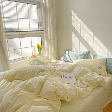 ins韩风纯色简约全棉水洗棉四件套亲肤透气纯棉奶油黄色床上用品