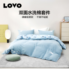罗莱生活LOVO乐蜗全棉四件套纯棉双面水洗棉被套床单床笠双人床