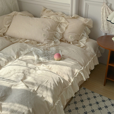 法式轻奢奶茶色全棉水洗棉四件套纯棉花边公主风被套加厚夹棉床盖