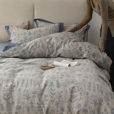 无印良品纯棉水洗棉四件套全棉2025新款被套被罩床笠三件套侘寂风