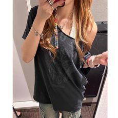 100%纯棉洋气短袖上衣潮2025夏季新款时尚洋气减龄百搭印花T恤女
