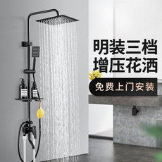 明装升降淋浴花洒套装家用全铜龙头明管卫生间淋雨喷头洗澡淋浴器