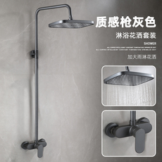 明装枪灰色全铜简易淋浴花洒套装 浴室方形升降雨淋冷热明管花洒