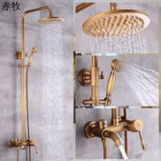 全铜欧式淋浴花洒套装仿古冷热可升降浴室复古简易入墙式手持喷头
