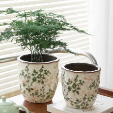 田园风陶瓷花盆繁花裂纹绿植盆栽蝴蝶兰花卉家用客厅摆件清新复古