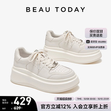 BeauToday厚底小白鞋女内增高单鞋新款休闲鞋白色板鞋女款老爹鞋