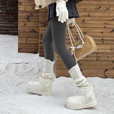 东北防水厚底雪地靴女冬2025新款加绒加厚短筒靴小个子内增高棉鞋