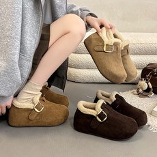 内增高厚底加绒勃肯鞋雪地靴棉拖鞋女外穿2025新款冬季毛毛半拖鞋
