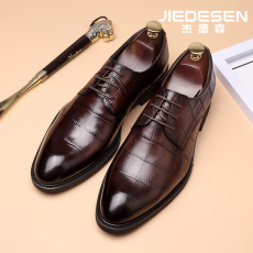 杰德森皮鞋男2024春季新款英伦商务正装真皮鞋尖头办公结婚内增高
