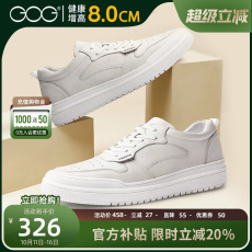 高哥增高鞋8cm新款休闲板鞋皮面运动男鞋轻便厚底内增高小白鞋男