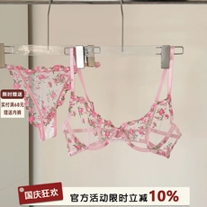 粉色聚拢超薄款内衣裤女大胸显小胸罩性感蕾丝纯欲文胸套装收副乳