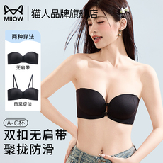 猫人前扣抹胸粉底液内衣女小胸聚拢显大隐形防滑无肩带裹胸文胸罩