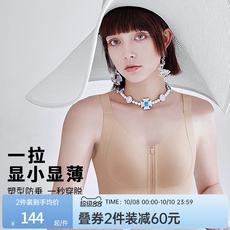 润微一拉薄大胸显小内衣女薄款无痕前扣拉链提拉防下垂收副乳文胸