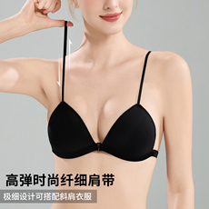 细肩带内衣女小胸平胸专用夏季薄款法式三角杯性感前扣美背文胸罩