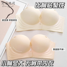 无肩带内衣女前扣小胸显大聚拢防滑上托隐形文胸抹胸罩性感裹胸贴