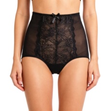 G18大码紧致透明蕾丝高腰女内裤 黑色性感女收腹包臀束腰收腹内裤