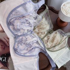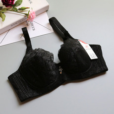 性感蕾丝文胸套装超薄款不聚拢调整型上托透明胸罩大码内衣D杯
