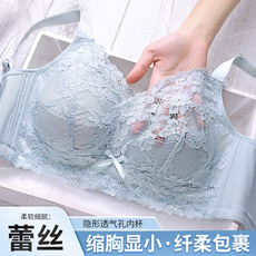 薄款大胸显小无钢圈内衣女收副乳聚拢纯欲显瘦调整型显小胸文胸罩