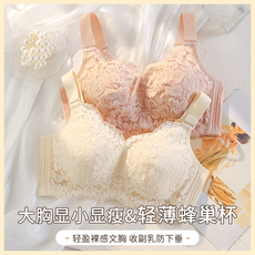 内衣女无钢圈大胸显小文胸罩大码聚拢调整型收副乳防下垂夏超薄款