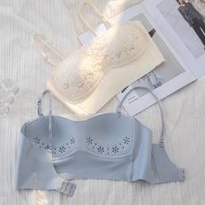 无钢圈光面半杯无痕美背内衣薄款透气性感收副乳裹胸式文胸细肩带