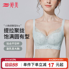 婷美薄款小胸提拉聚拢蕾丝内衣调整型收副乳提拉防垂夏季透气文胸