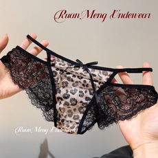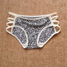 豹纹蕾丝法式性感蕾丝内裤女纯欲交叉带透气低腰三角裤镂空诱惑