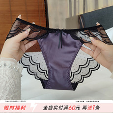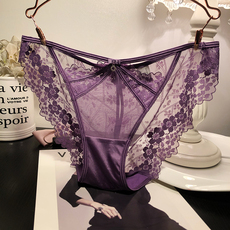 高级缎面蕾丝内裤女士性感低腰高贵紫色透明诱惑夏季无痕薄三角裤